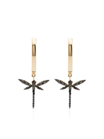 18kt Yellow Gold Small Dragonfly Diamond Earrings In 金色