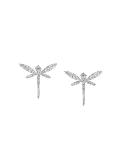 18kt Gold Dragonfly Diamond Stud Earrings In Metallic