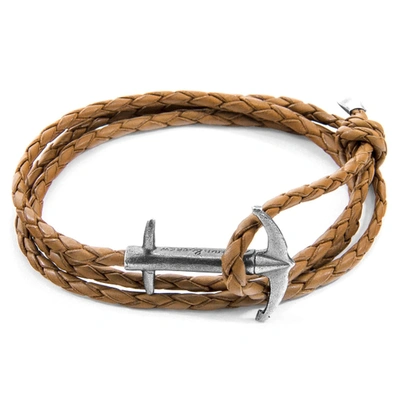 Light Brown Admiral Anchor Silver And Braided Leather Bracelet In &