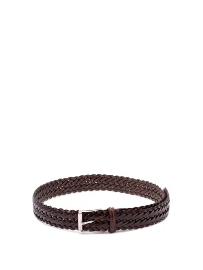 Woven Leather Belt In Brown