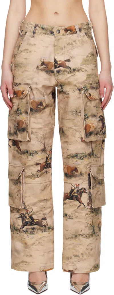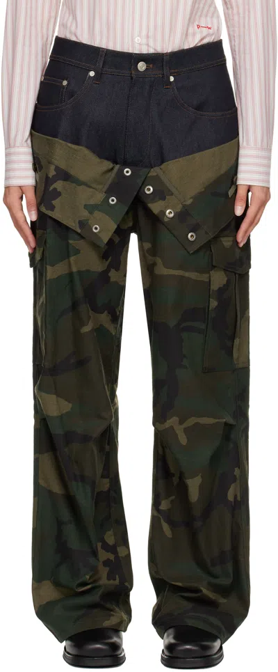 Khaki Camouflage Double Waist Work Wide-leg Cargo Pants In Green