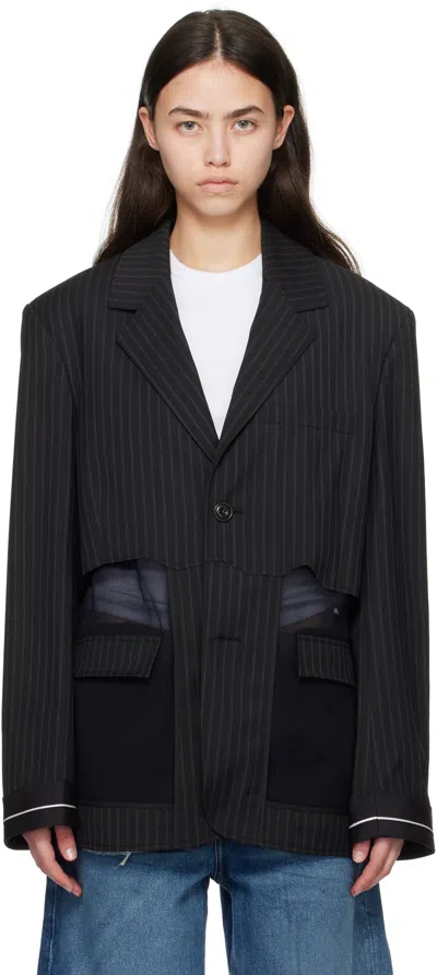Black Inside Out Stripe Sheer Blazer In Multi