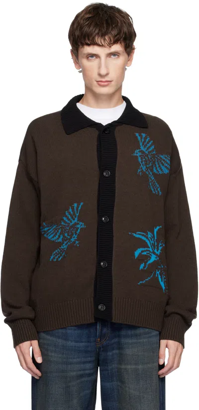 Brown Bird Intarsia Cardigan