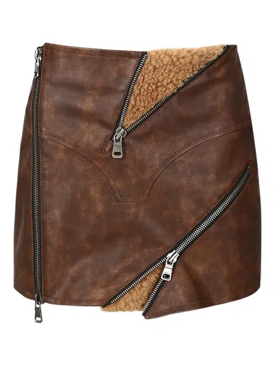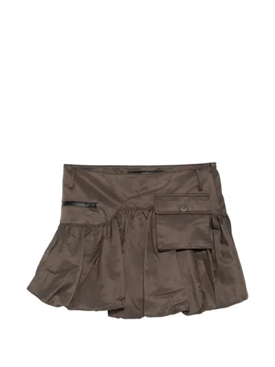 Zip Pocket Mini Skirt In Brown