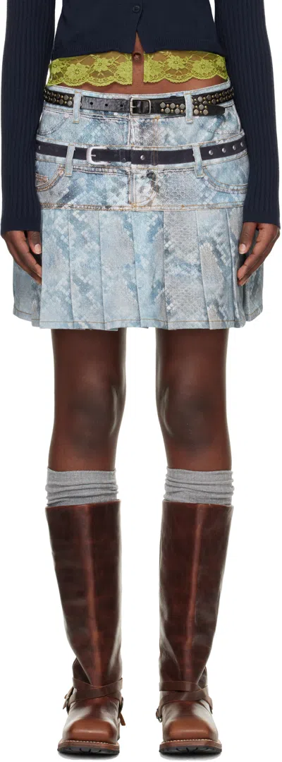 Blue Python Fade Denim Printed Miniskirt