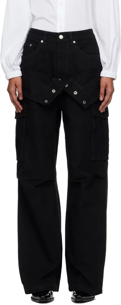 Black Sheer Denim Cargo Pants