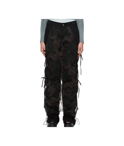 Camouflage Mesh Layered Tying Trousers In Black