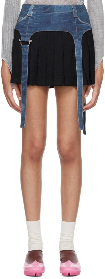 Blue & Black Trompe L'oeil Miniskirt In Denim/black