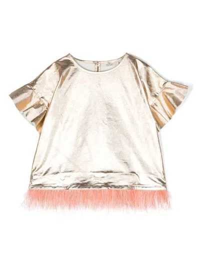 Kids' Feather-trim T-shirt In 黑色