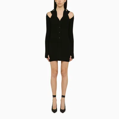 Black Ribbed Mini Dress With Cut Out In Multi