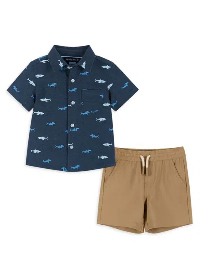 Baby Boy's 2-piece Button Shirt & Shorts Set In Navy Shark