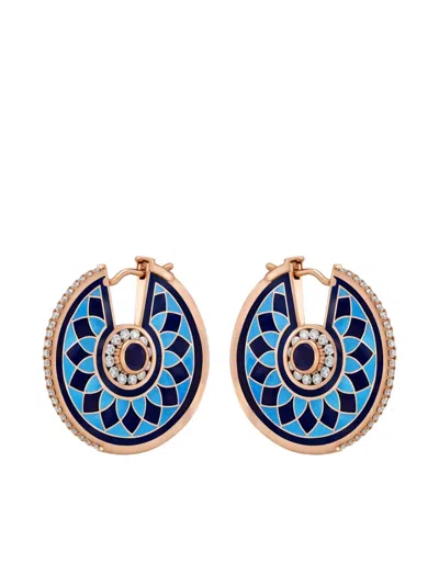 18k Recycled Rose Gold Kaleido Diamond Hoop Earrings In Blue