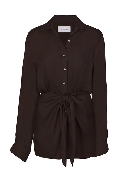 The L.a. Button-down Wrap Mini Dress In Matte Crepe In Espresso