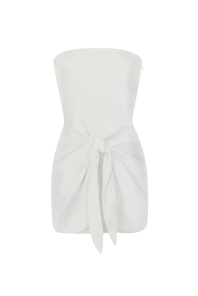 The Strapless D.k. Mini Wrap Dress In Textured Stretch In White