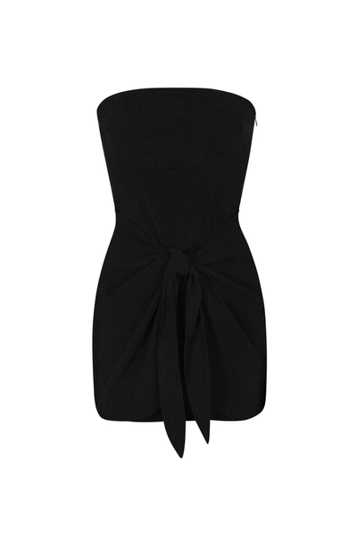 The Strapless D.k. Mini Wrap Dress In Textured Stretch In Black