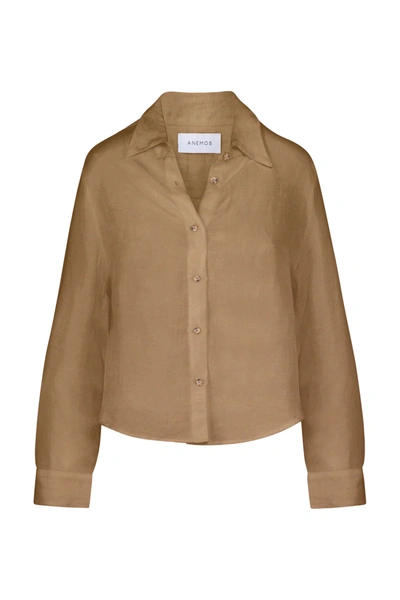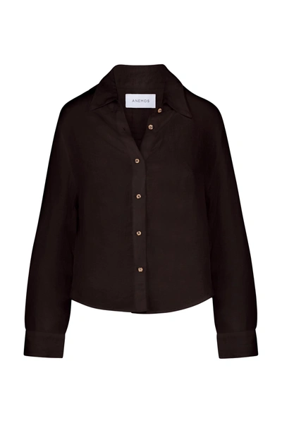 The Phillips Long Sleeve Button-down Shirt In Linen Cupro In Espresso
