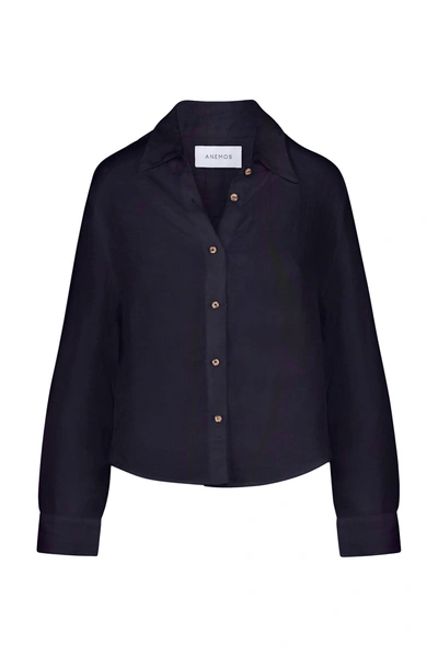 The Phillips Long Sleeve Button-down Shirt In Linen Cupro In Navy