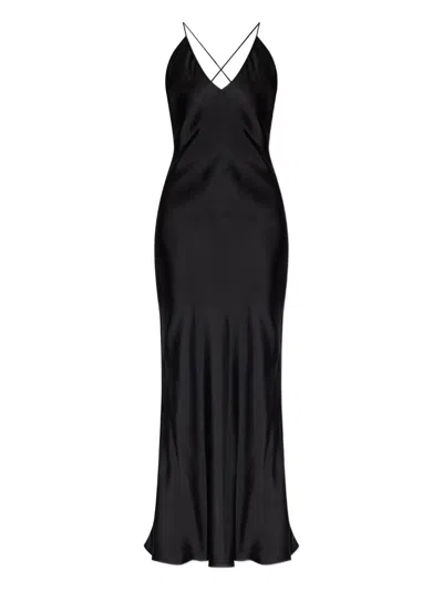 Black Satin Long Laurel Slip Dress With Crisscross Straps