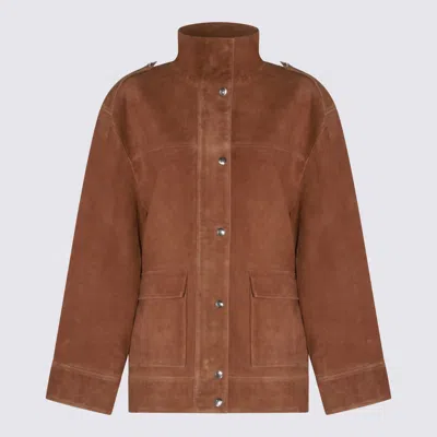 Single-breasted Wool Blend Jacket With Flap Pockets In Brown