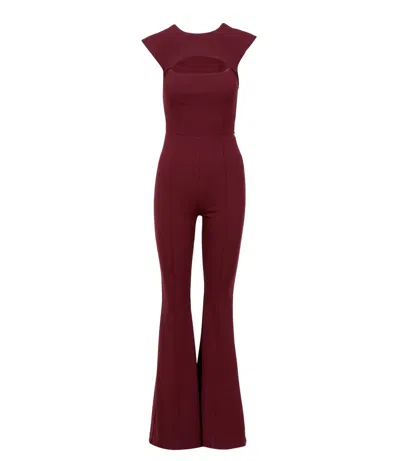 Crew Neck Jumpsuit In Burgundy
