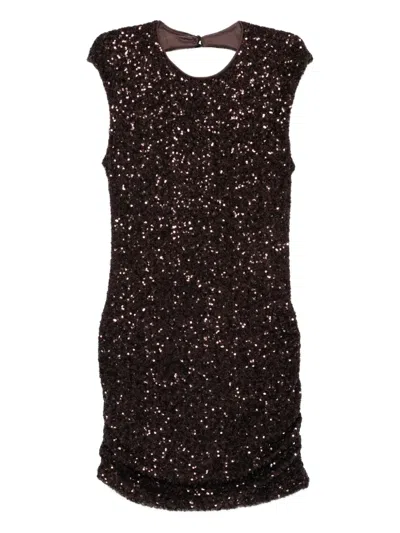 Sequined Embroidered Long-sleeved Mini Dress In Brown