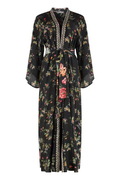 Floral Silk Pants With Wide-leg Silhouette In Green