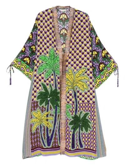 Floral Silk Pants With Wide-leg Silhouette In Green