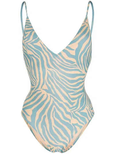Zebra-print Open-back One-piece In Blue