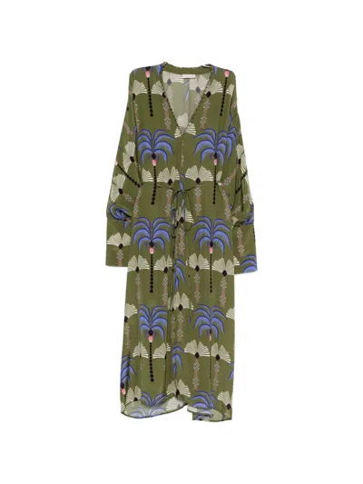 Cassandra Palm-print Maxi Dress In Green