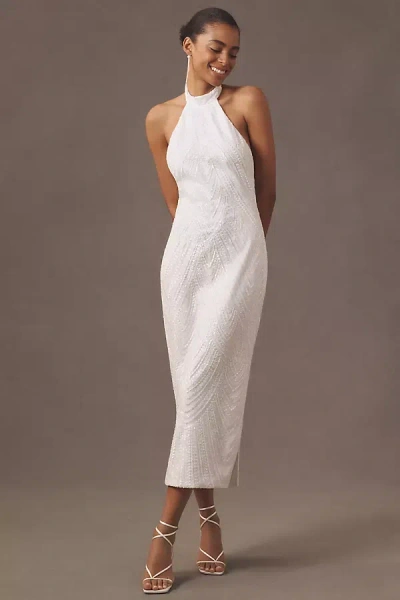 Just One Look Halter Sequin Slim Midi Dress In White
