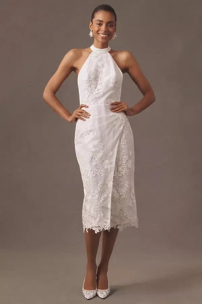 Unforgettable Halter Embroidered Lace Midi Dress In White