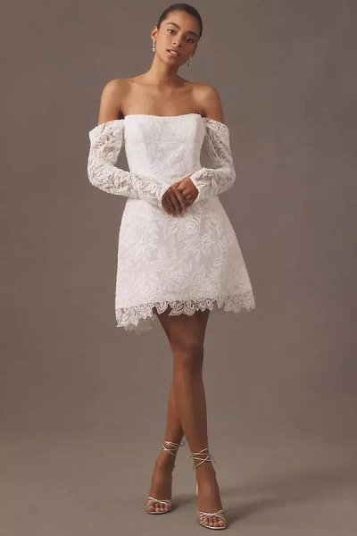 Xoxo Off-the-shoulder Embellished Lace A-line Mini Dress In White