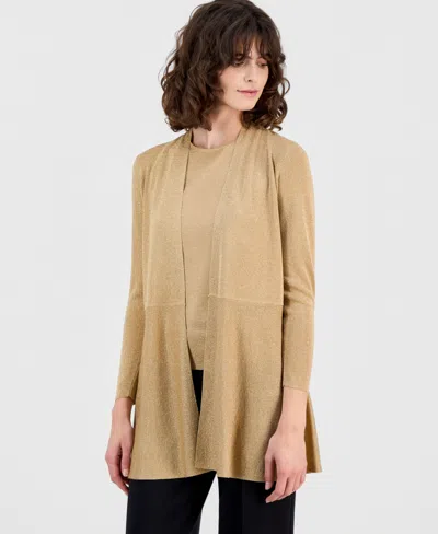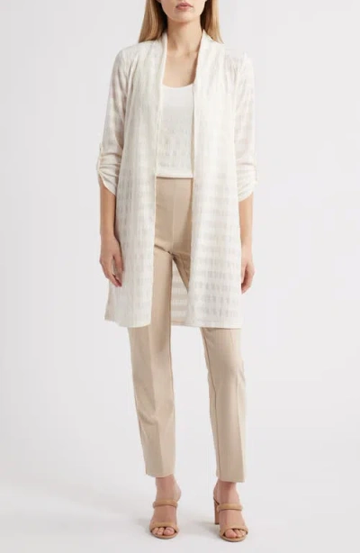 Women's Textured-knit Open-knit Roll-tab-sleeve Cardigan In White
