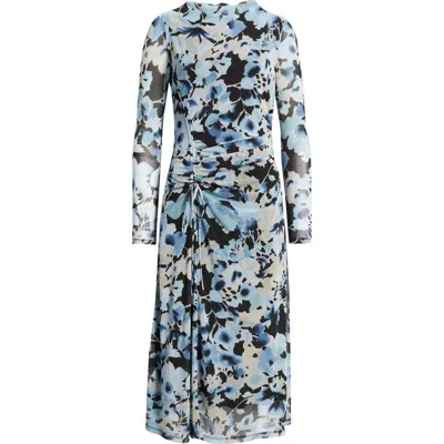 Floral Long Sleeve Ruched Midi Dress In Multi