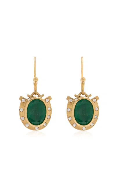 Paloma 18k Gold; Diamond; Emerald Earrings In Green