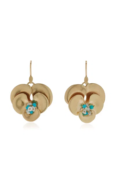 Pansey 14k Yellow Gold; Pearl Turquoise Earrings