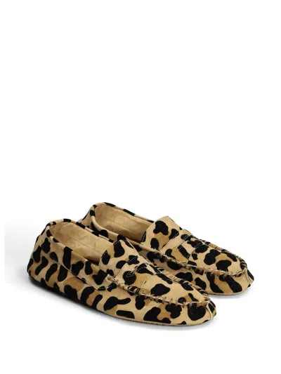 Leather Ballerina With Animal Pattern And Elastic Band In Animal Print