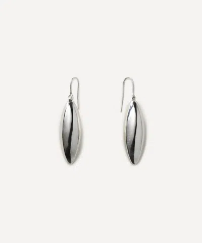 Sterling Silver Large Elongated Ellipse Drop Earrings In Metallic