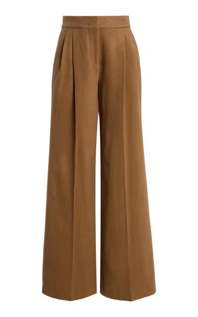 Pleated Organic Cotton-chambray Wide-leg Pants In Blue