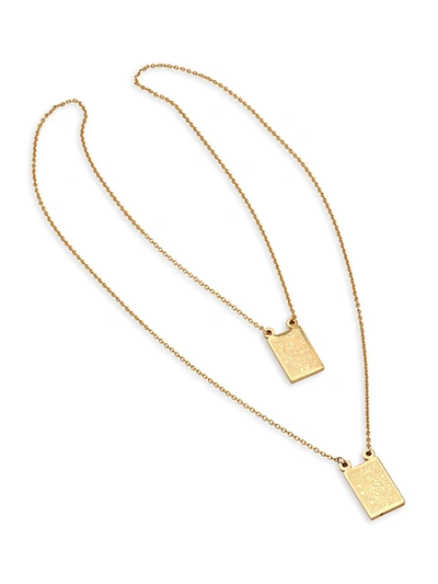 Men's 18k Goldplated Stainless Steel Two-strand Religious Pendant Necklace