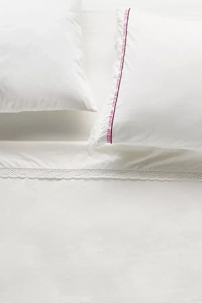 Organic Cotton Percale Embroidered Text Sheet Set In White