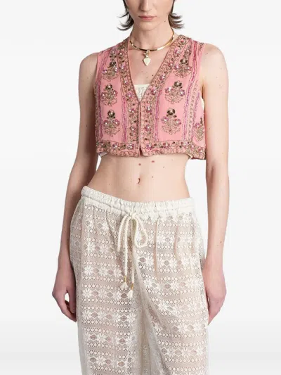 Sequin-embellished Embroidered Waistcoat In Multi