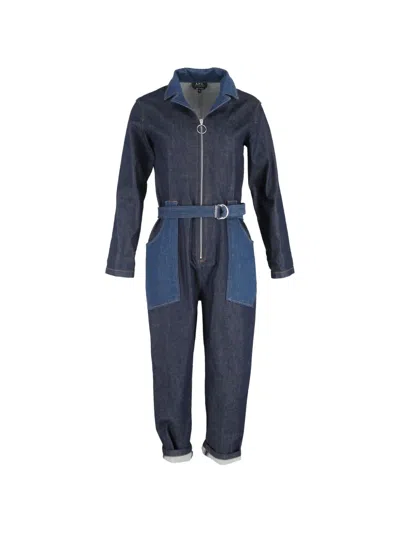 Pre-owned Rosie Belted Denim Jumpsuit In Blue