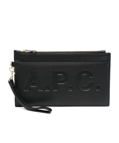 A.p.c. Grace Leather Chain Clutch Bag In Black