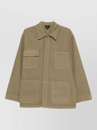 A.p.c. Button-up Long-sleeved Jacket In Brown