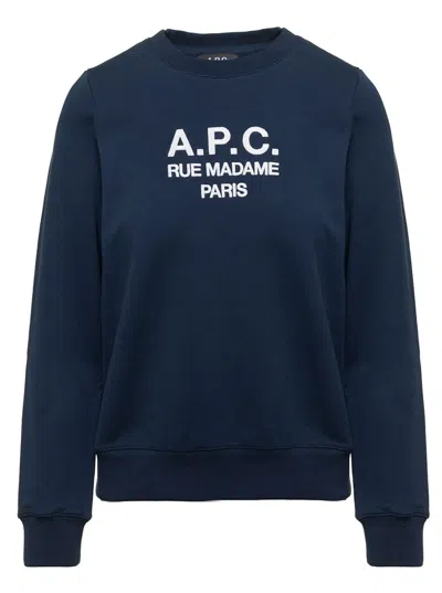Blue Tina Sweatshirt In Fleece Cotton With Logo Embroidery To The Chest A.p.c. Woman
