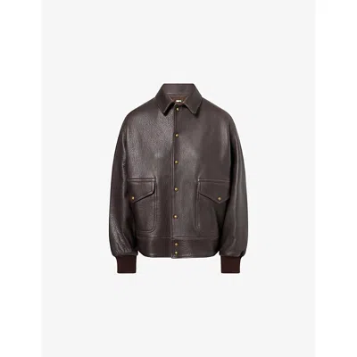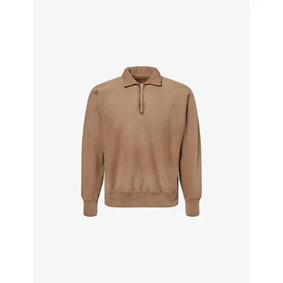 Mens Brown Long-sleeve Half-zip Cotton Sweatshirt