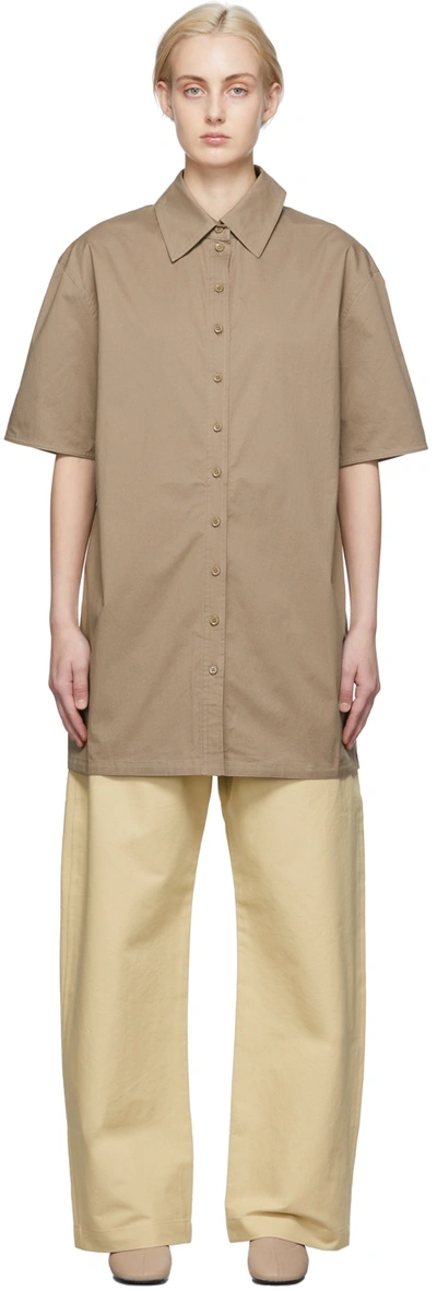 Brown Poplin Short Dress In Beige