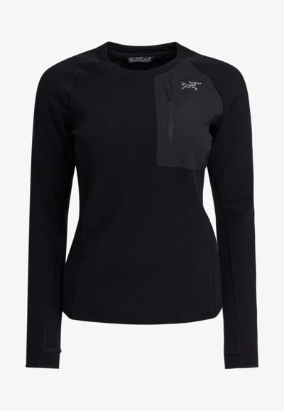Kyanite Crewneck Top With Embroidered-logo In Black