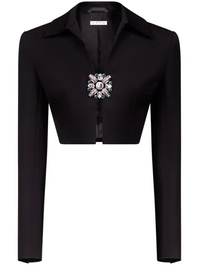 Crystal-embellished Cropped Wool Jacket In Black